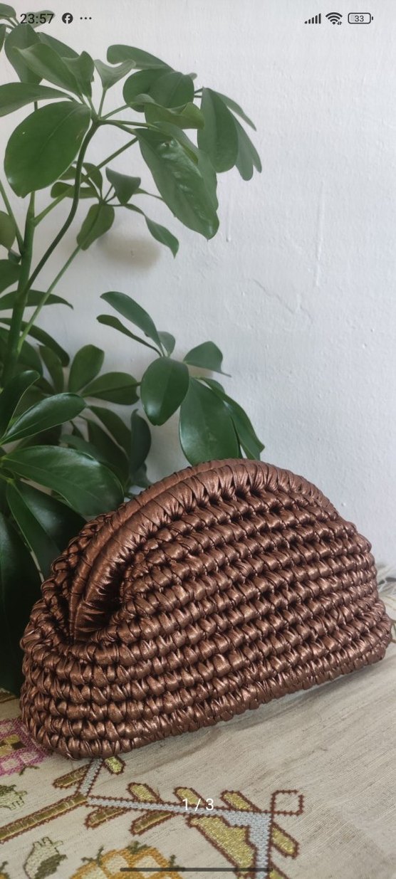 Bu kahverengi örgü çanta deri görünümlü ip ile örülmüştür. 20 çamlık gizli burs kullanilmistir