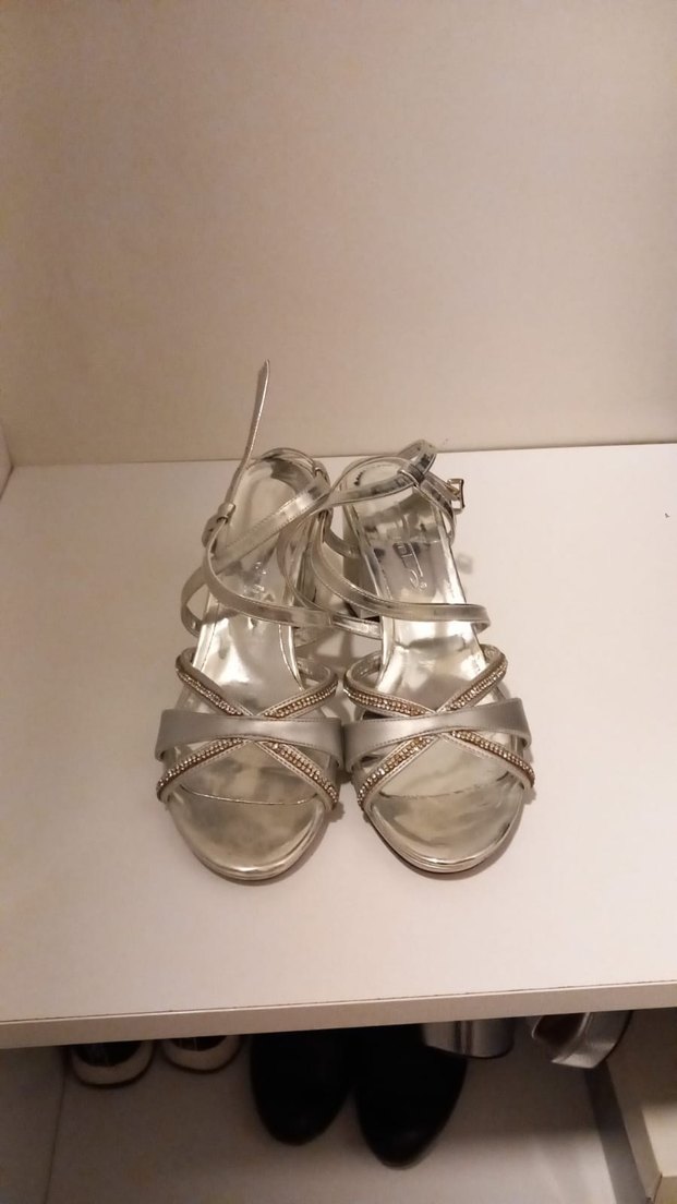 Metalik Gri Kadın Dolgu Topuklu Sandalet