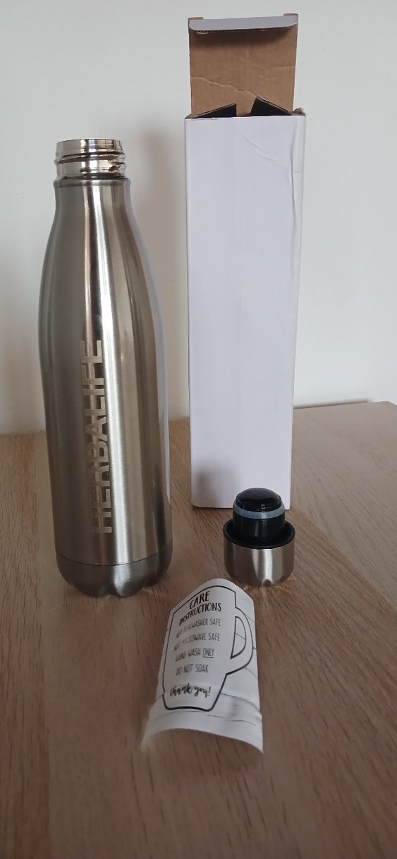 metal Herbalife termos şişesi, içecekleri sıcak tutar ve güvenli kapak ile bakım talimatları içerir. Kamp veya dış mekan için uygundur. orjinal Herbalife promosyon ürünüdür ve çok nadirdir.