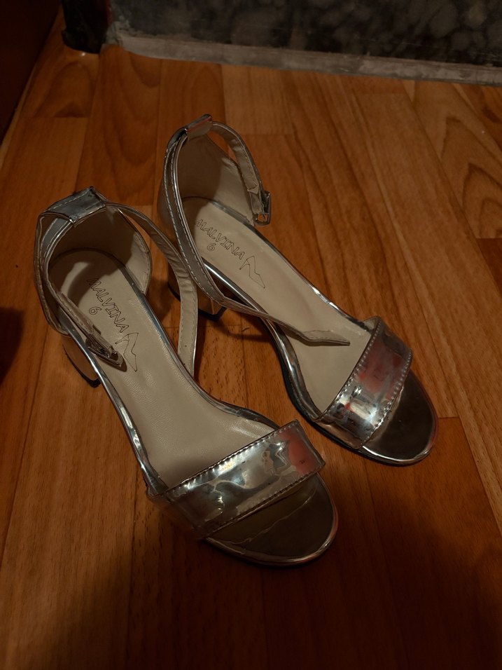 metalik parlaklığa sahip, tokalı stiletto topuklu kadın ayakkabısıdır. Romantik akşamlar için çağdaş bir tarz sunar. ürünün defosu yok 3 defa giyildi ama gayet temiz ve sağlam
