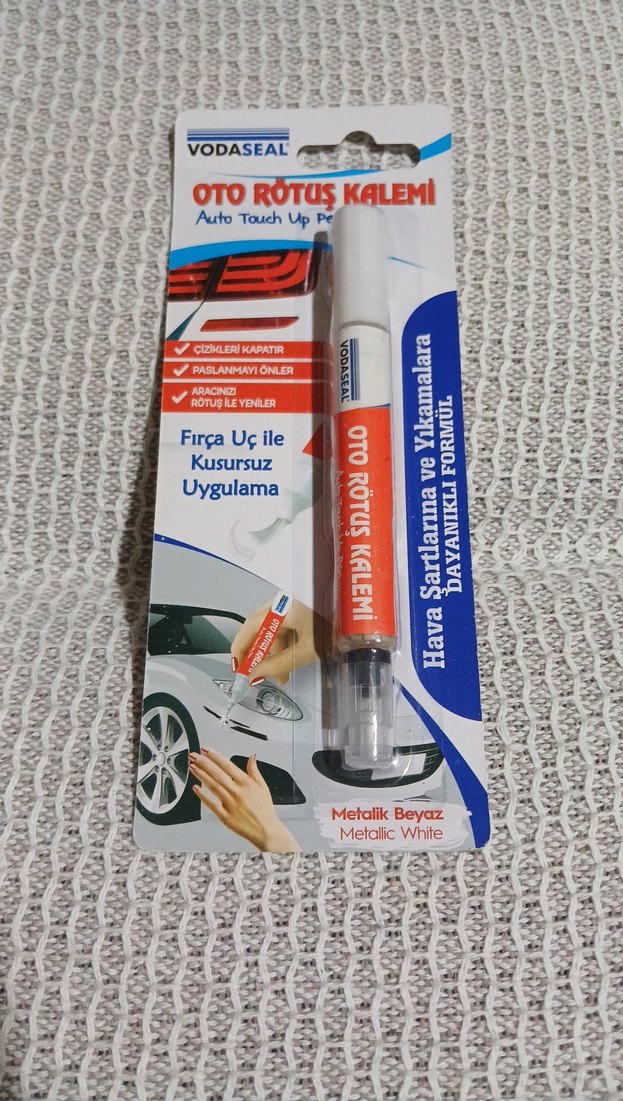 Fırça uçlu metallic beyaz oto rötuş kalemi çizikleri kapatır, paslanmayı önler ve hava şartlarına karşı koruma sağlar.