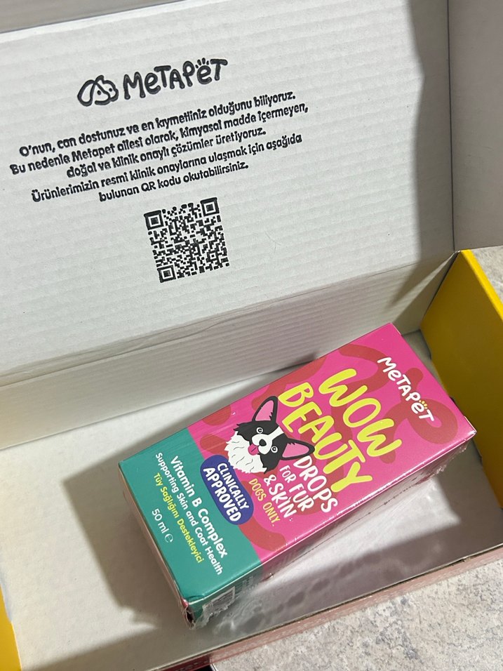 Metapet Wow Beauty köpekler için Damla, vitamin kompleksi içeren tüy sağlığını destekleyici b vitam inli damla. Orjinal üründür,sıfır paketli olarak gönderilecektir. onaylı formülüyle nazik ve etkili çözüm sunar.400 tl ye aldım. hiç kullanılmadı. #köpek #köpekbakım #evcilhayvan #tüysağlığı #metapet #metapetköpek