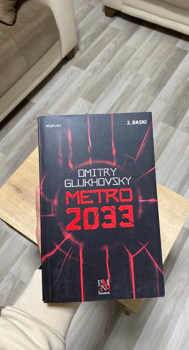 Dmitry Glukhovsky'nin Metro 2033 adlı romanının 2. baskısı. Karanlık kapak ve dikkat çeken kırmızı yazılar içerir. Hiç okunmadı tertemizdir
