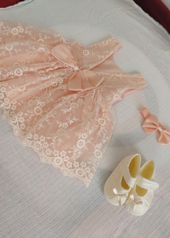 Somon rengi Mevlut elbisesi 0-3 ay. mevlid de giyildi 1 kere. Yepyeni tertemiz