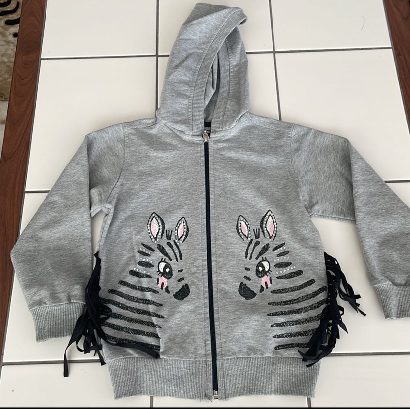 4-5 yaş kız çocuk uyumlu,2 iplik kaliteli penye kumaştan yapılmış mevsimlik hırka..kolunun arka kısmında belli belirsiz boya lekesi mevcut..