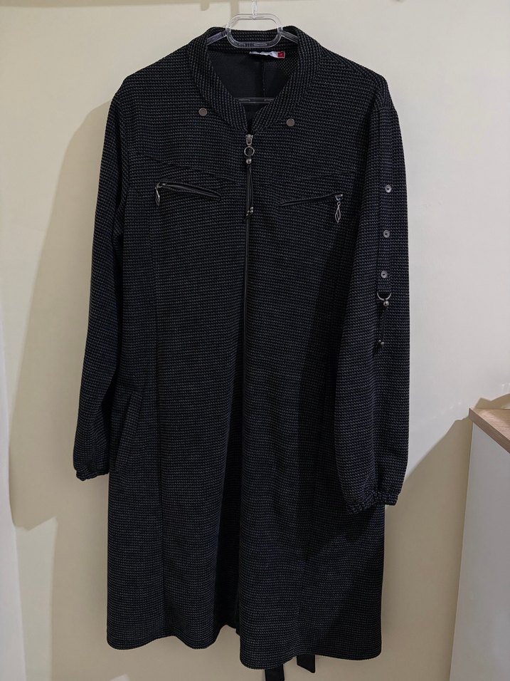 Uzunluk 97cm, iki kol arası genişlik 55cm, kol uzunluğu 63cm. Herhangi bir sorunu yoktur. Mevsimlik pardesü