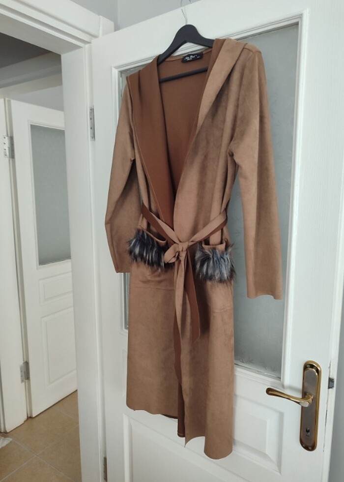 Boy 110 cm. Cepleri tüylü , şapkalı , süet. Hiç kullanılmadı. M-L beden uyumludur. marka temsili. #süetpalto #palto #kahverengi #kaban #mevsimlikpalto #kaşe #zara #bershka #koton #defacto #zühre #pardesö