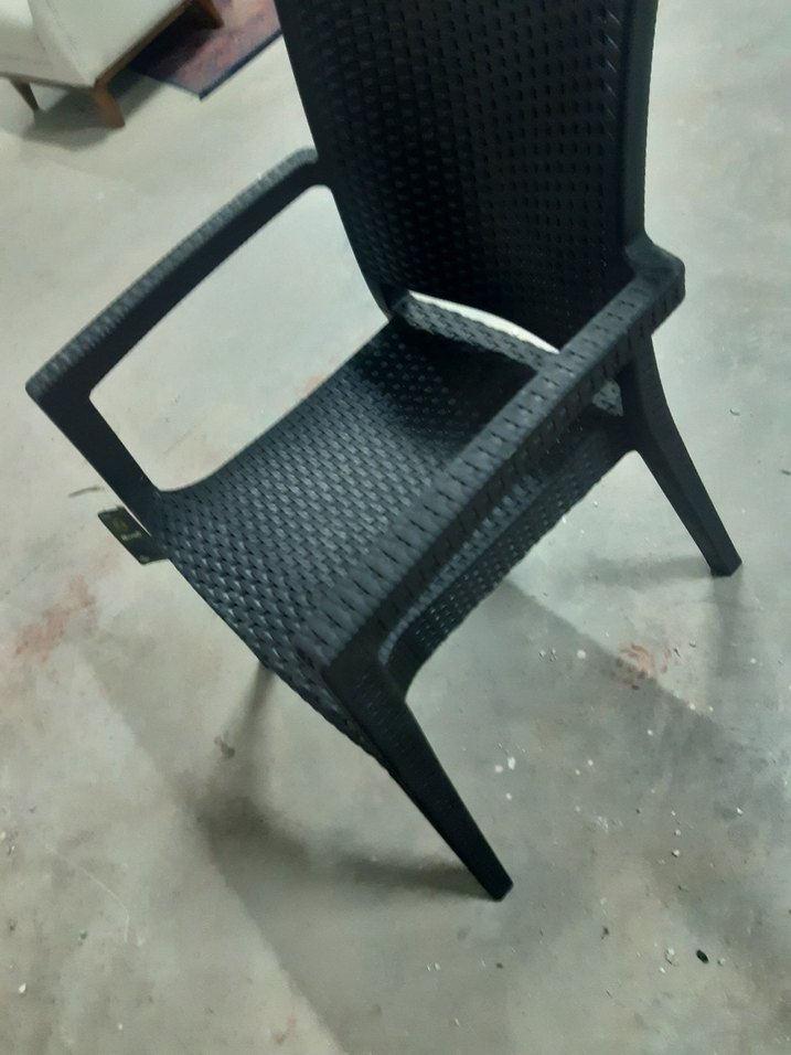 Kolları bulunan bahçe ve Balkon Sandalyesi, dokulu malzemeden üretilmiştir.