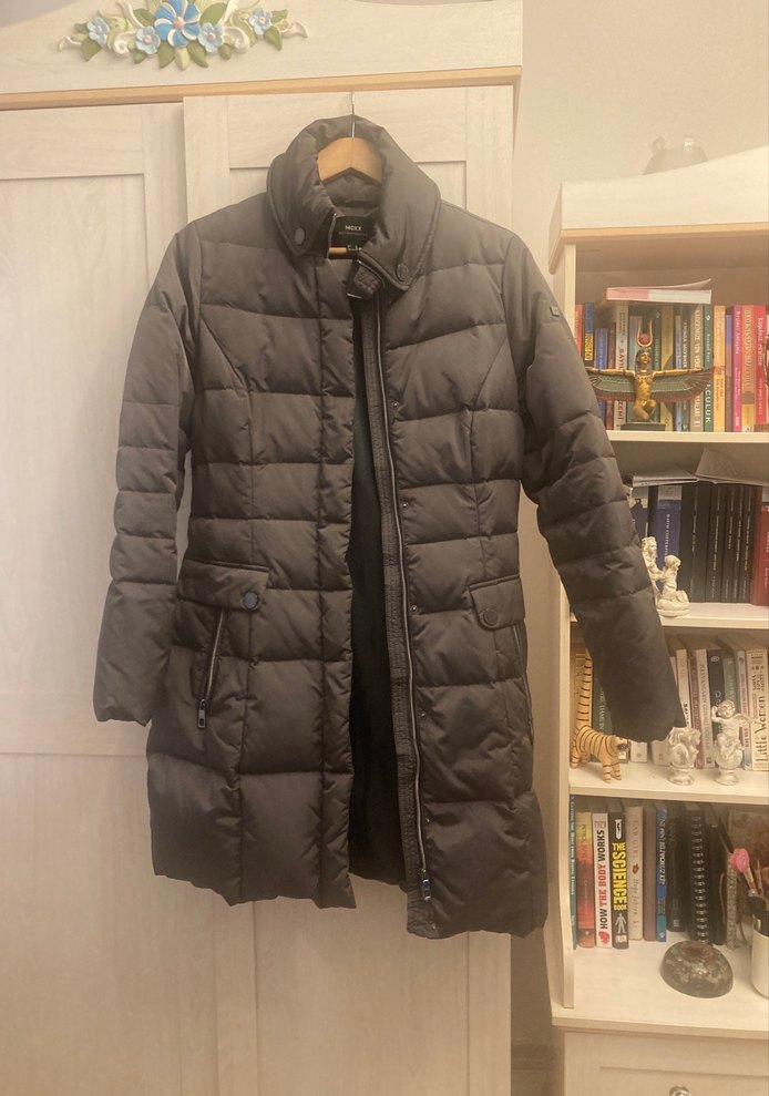 Fitted kesim, gri renkli kışlık mont, notched lapel yaka ve uzun kolludur. Orta boy uzunlukta, kemer detaylı ve yumuşak kumaştan yapılmıştır. Günlük kullanıma uygundur. ❄️ Almanyadan aldım hiç giyilmedi boyu 90 cm iki kol arası 53 cm çok sıcak tutuyor