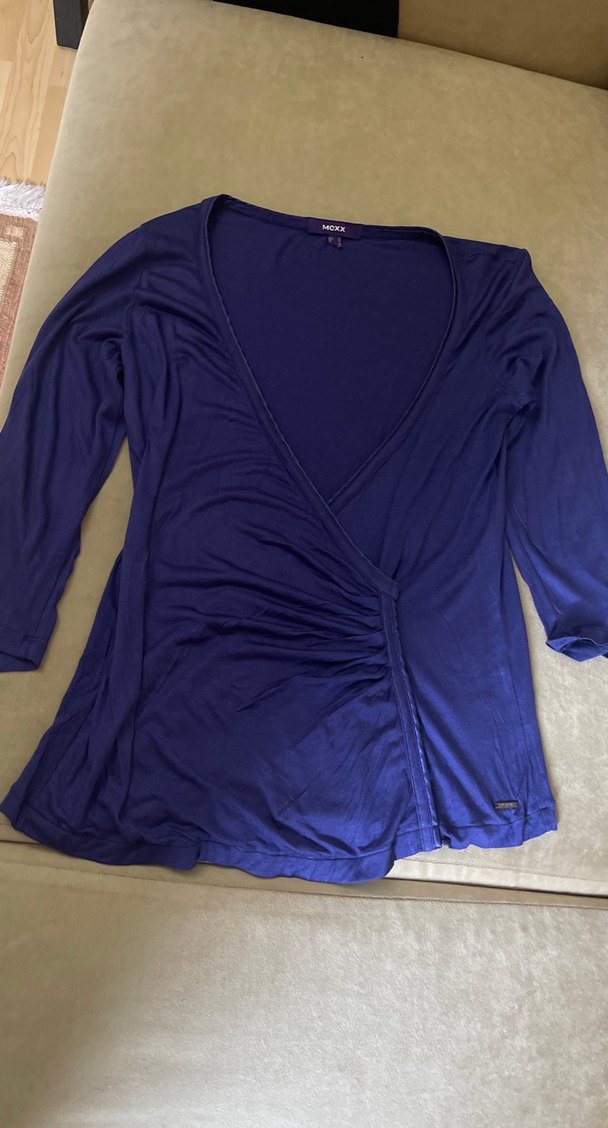 Lacivert renkli, V yaka ve uzun kollu . kumaştan, drapeli ve bol kesimdir. günlük rahat kullanıma uygundur. Çok kaliteli az kullanıldı