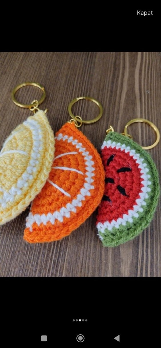 Toplu sipariş alabiliriz adet fiyatı bu. Renkli ve örgü meyve dilimi şeklinde, rahat bohem tarzda anahtarlıklar. Canlı renkler ve yumuşak dokusu ile dikkat çekiyor.