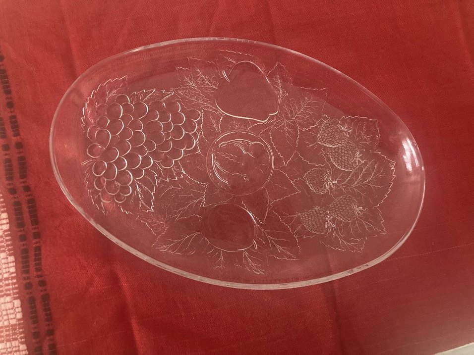 Üzüm, elma ve yaprak desenli law marka cam büyük boy sunumluk tank, Geleneksel tarzda, klasik sofralar için uygundur.