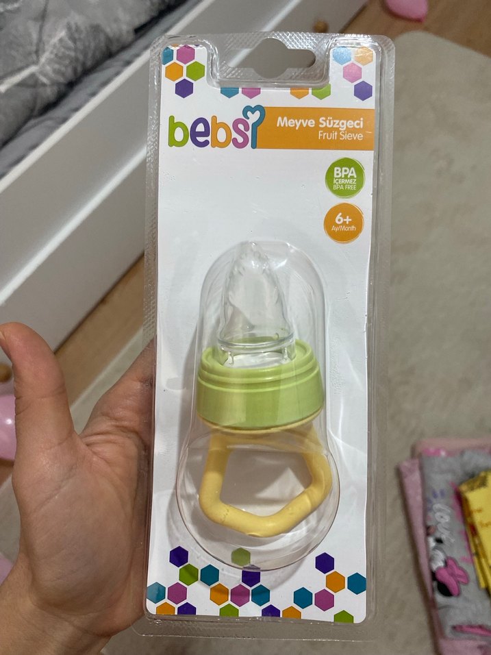 Bebsi pastel sarı meyve süzgeci, BPA içermez ve 6 ay ve üzeri bebekler için uygundur. Hiç kullanılmadı paketli elimde fazla olduğu için satıyorum