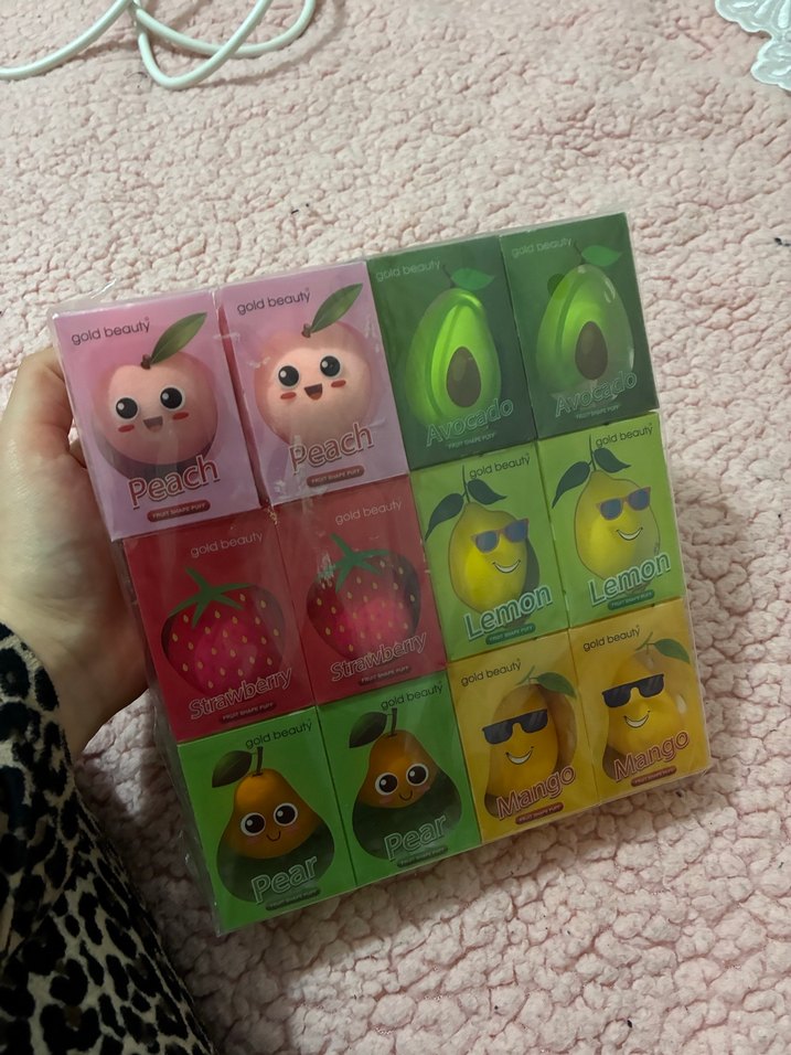 Şeftali, avokado, çilek, limon, armut ve mango şeklinde pastel renkli 12li makyaj sünger seti. Yumuşak dokulu ve makyajda pürüzsüz uygulama sağlar.