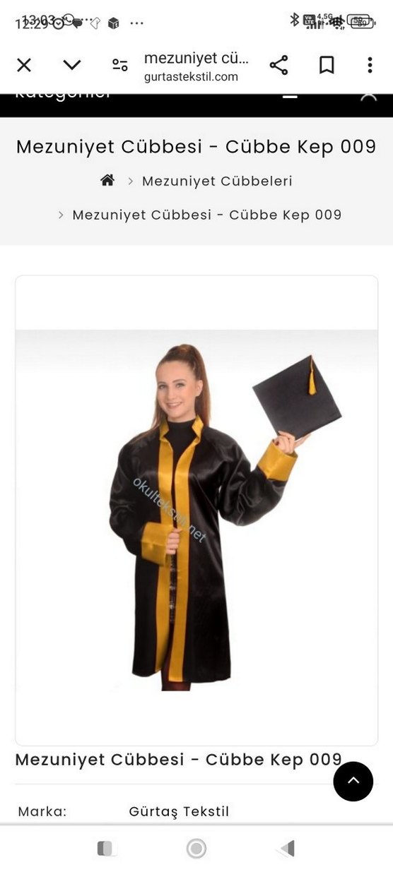 Uzun kollu, regular fit ve parlak siyah kumaşlı kadın mezuniyet cübbesi. Püsküllü ve uyumlu kep ile birlikte sunulur.