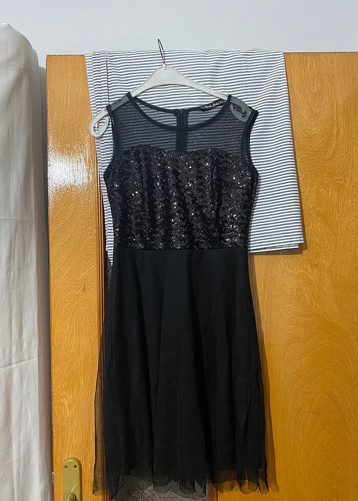 Elbise 1 kez giyildi Üst kısmı Pul payetli altı tül