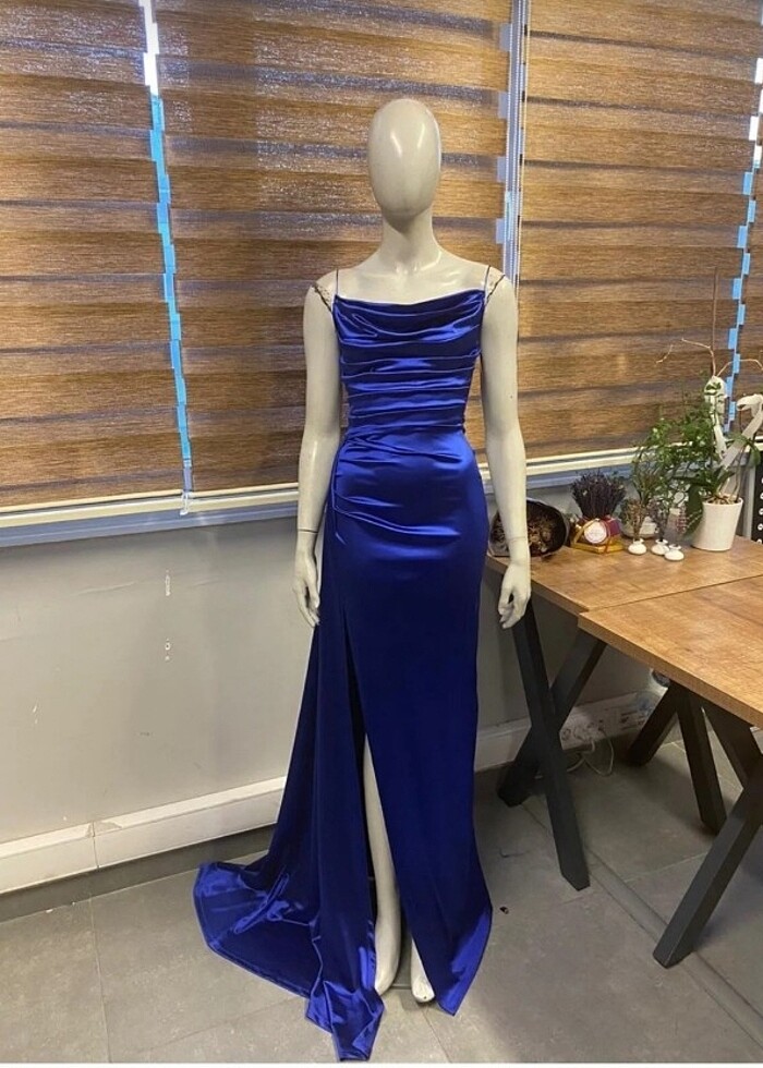 Sadece bir kere giydim mezuniyetimde elbise durumu cok iyi, tekliflere açığım Esnek saten kumaş yırtmaçlı askılı uzun elbise