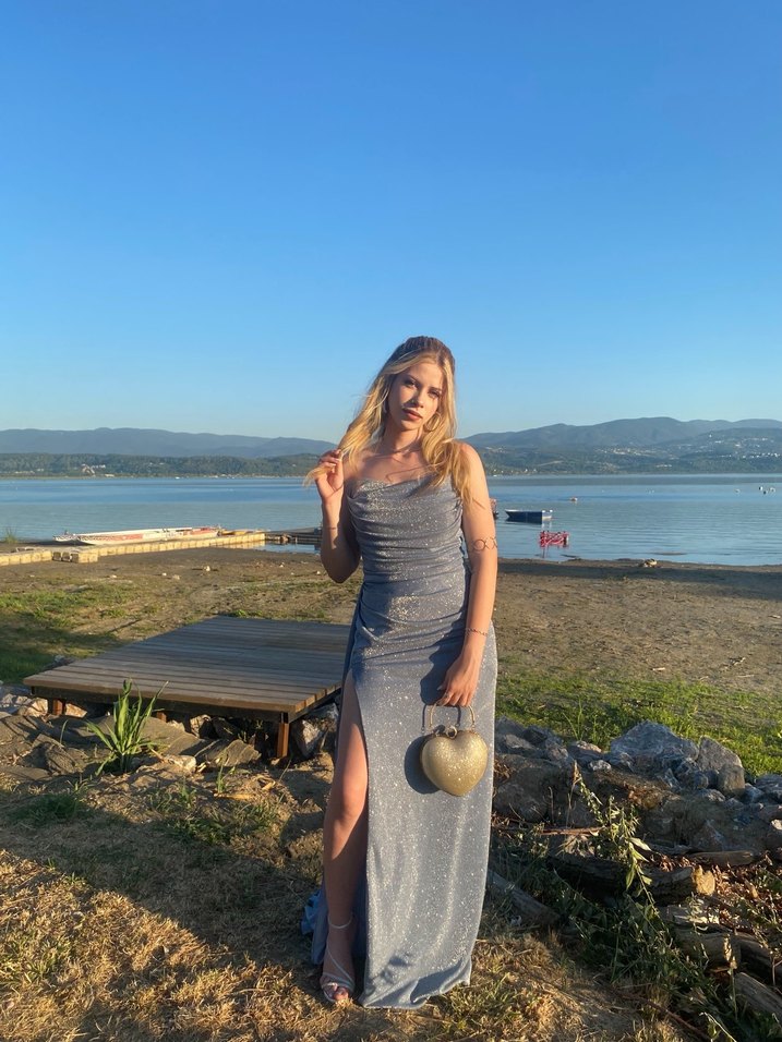 straplez ve uzun kesim kadın elbisesi. açık hava etkinlikleri sadece bir kere giydim mezuniyet için almıştım