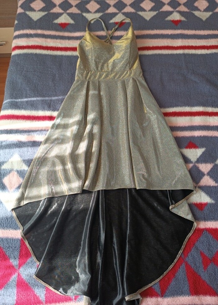 Mezuniyette özel günlerde çok şık 36 beden askısı,parlak simli ayarlanabilir astarlı, gizli fermuarlı, dolgulu arkası uzun elbise