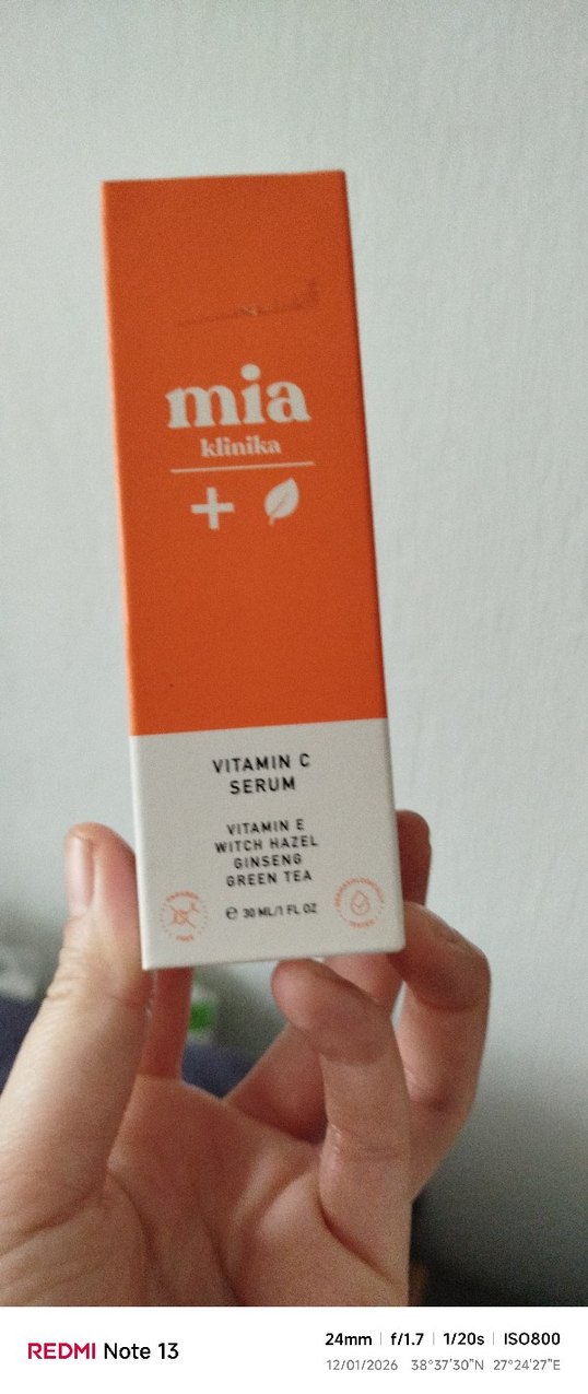 Mia Klinika Vitamin C serumu, cilt bakımı için E vitamini, cadı fındığı, ginseng ve yeşil çay içerir. 30 ml şişede sunulur.