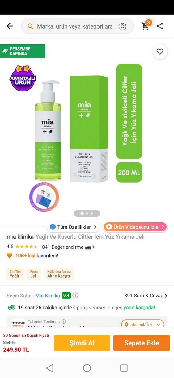 Mia Klinika'nın yağlı ve kusurlu ciltler için akne karşıtı yüz yıkama jeli, 200ML hacminde, cildi derinlemesine temizler. Sıfır ürün