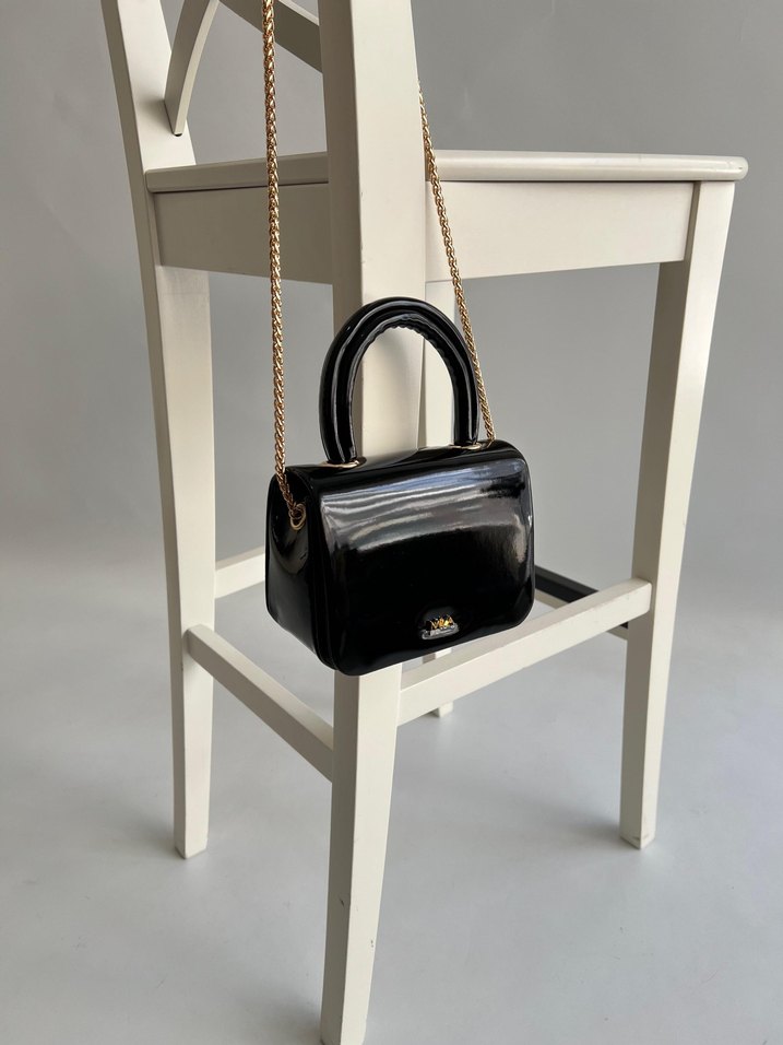 MIA Zincir Detaylı Parlak Siyah Kadın Çanta