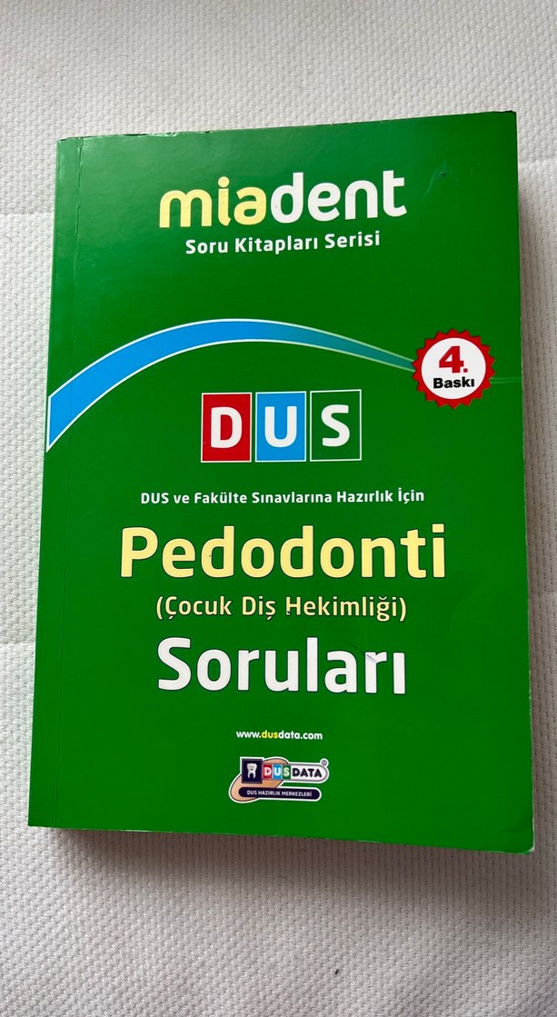 Miadent soru kitapları serisinden, DUS ve fakülte sınavlarına hazırlık için Pedodonti (Çocuk Diş Hekimliği) soruları içeren 4. baskı kitap. Temiz