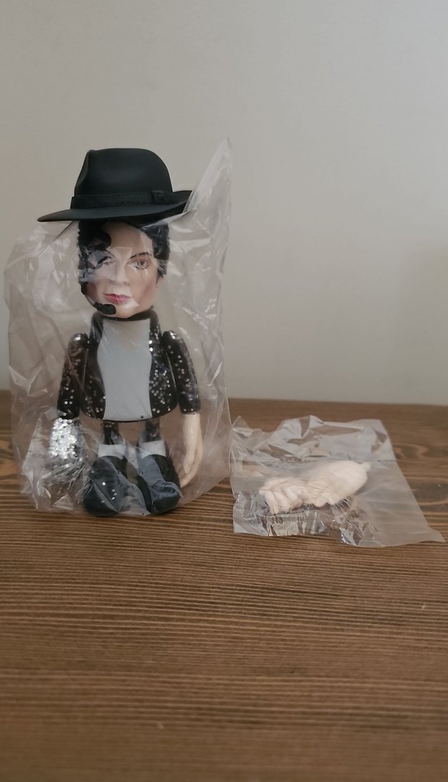 Efsane şarkıcı Michael Jackson a ait figür. En bilinen görüntüsü. Yedek eller ve Şapkası ile ambalajında kutulu olarak gelecektir. Şapkası ile birlikte boyu 13 cm.