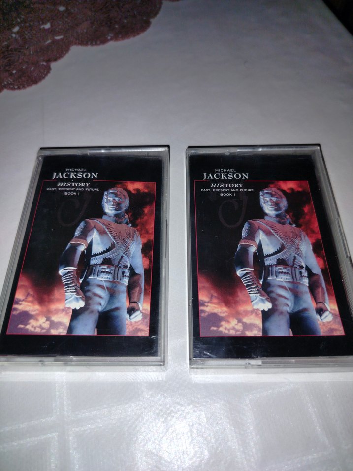 Michael Jackson'ın "History" albümünden Bölüm 1 iki kaset. Kapakta sanatçının fütüristik kıyafeti yer alıyor.