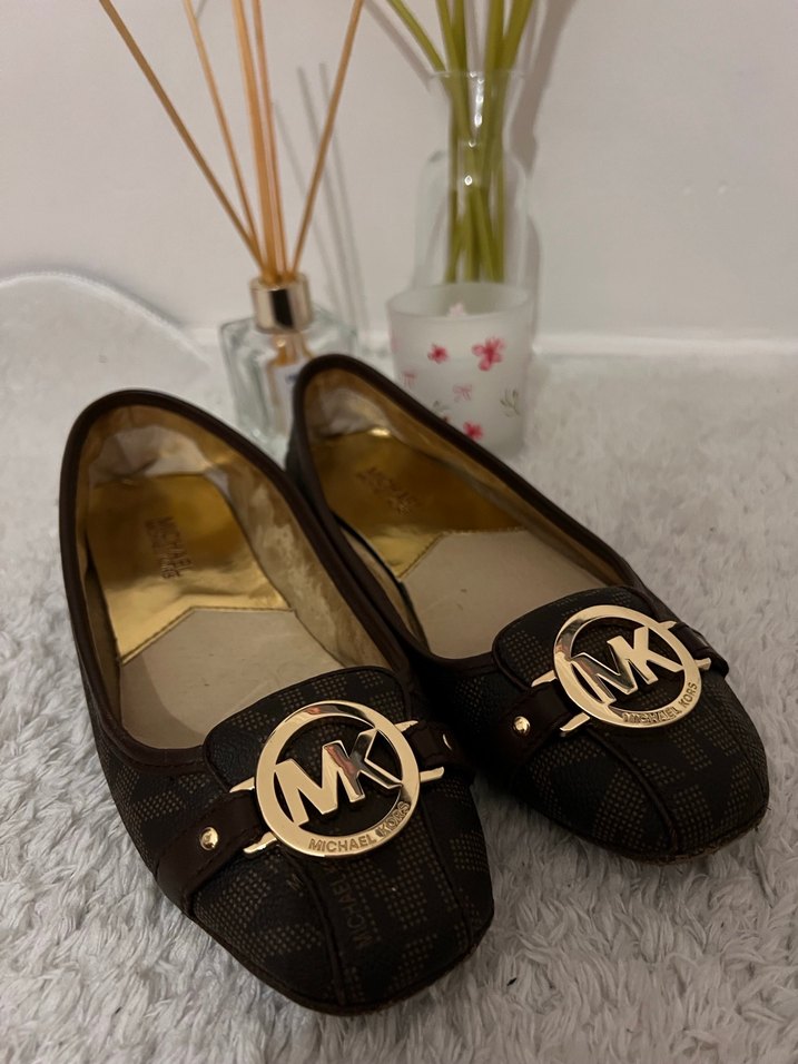 Michael Kors marka, kahverengi babet yurtdışından geldi iki yüzeyinde kod vs var son fotoğrafı ekledim önünde hafif kalkmalar var surtune bagli kesinlikle görünmüyor