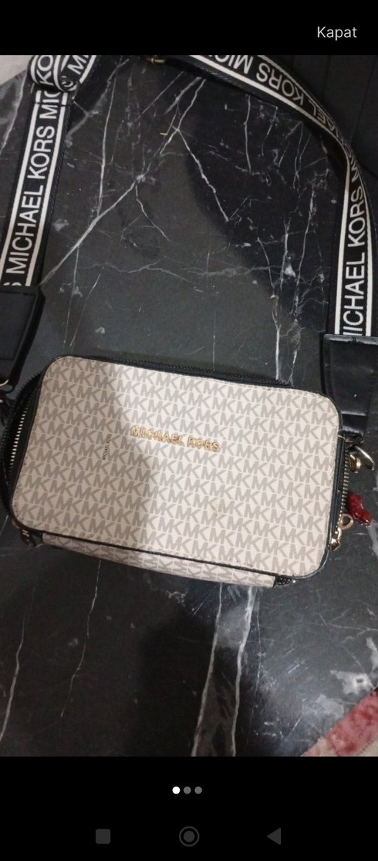 Michael Kors beyaz deri çanta, desenli ve tokalı detaylıdır. Günlük sokak stili için şık ve trend bir tasarıma sahiptir.