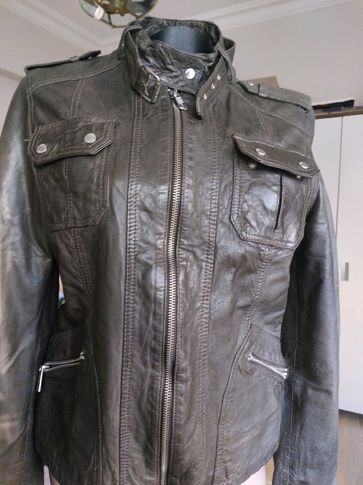 Çok az kullanılmış, trend deri ceket.
