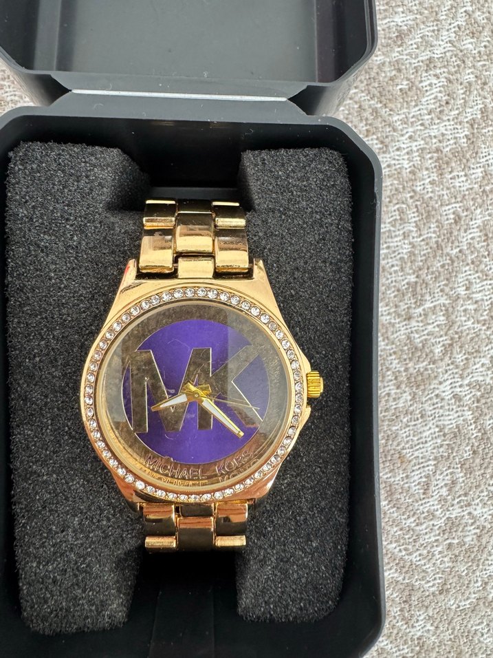 Michael Kors marka, tokalı bilezikli, kristal detaylı altın renkli kadın saati. Koyu renk MK logolu kadranıyla trend günlük kullanıma uygundur. ⌚hiç kullanılmamıştır sıfır
