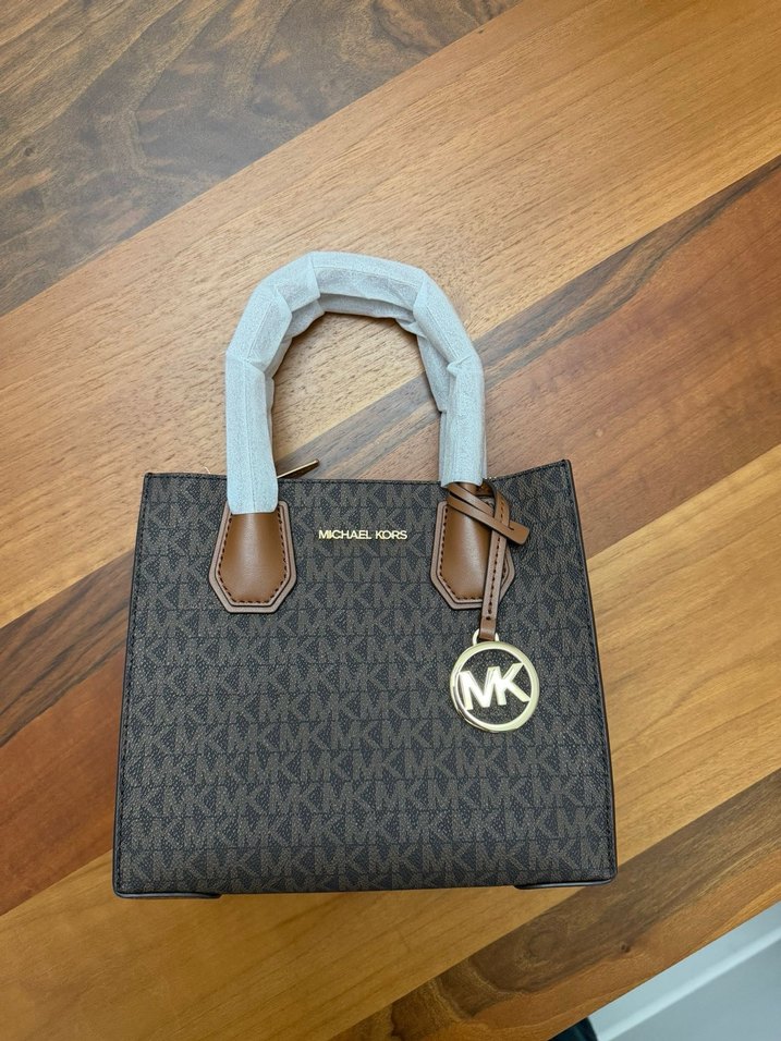Michael Kors marka, kahverengi deri, baskılı desene sahip, tokalı detaylı kadın çantası. Modern klasik tarzda, gündelik iş kullanımı için uygun, şık ve rahat bir model. Amerika’dan alındı etiketi yok ama hiç kullanılmadı sıfır.
