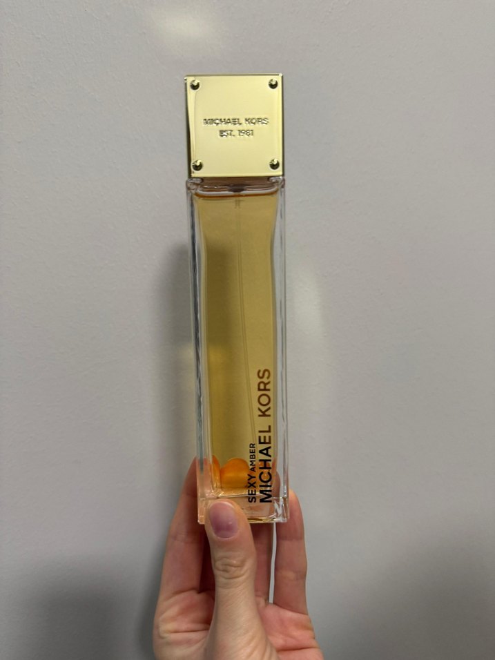 Şeffaf şişede, altın renk kapaklı Michael Kors kadın parfümü. Uzun ve ince tasarımıyla amber renk sıvı görünür. Amber: Parfümün temel sıcak, reçineli ve hafif tatlı gövdesini oluşturuyor. iki üç kere kullandim. Beyaz çiçekler: Özellikle jasmin, gardenya gibi çiçekler üst ve orta notalarda yer alıyor; parfüme zarif bir çiçek dokusu katıyor. Sandal ağacı: Amber’in altındaki sıcak odunsu temel notasını sağlıyor.