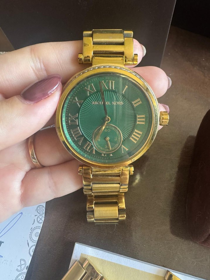 Zarif ve zamansız bir saat çok satılan bir model İç kadranı yeşil etrafı taşlı altın saat Modeli MK 6065
