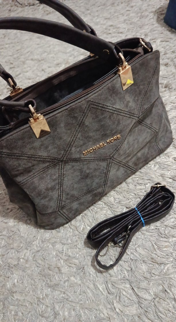 Michael Kors kahve rengi süet malzemeden kadın çanta, baskılı desen ve tokalı detaylara sahip. Modern klasik tarzıyla günlük kullanıma uygun, trend sokak stilini yansıtıyor. Kulplu ve çıkarılabilir askılıdır.