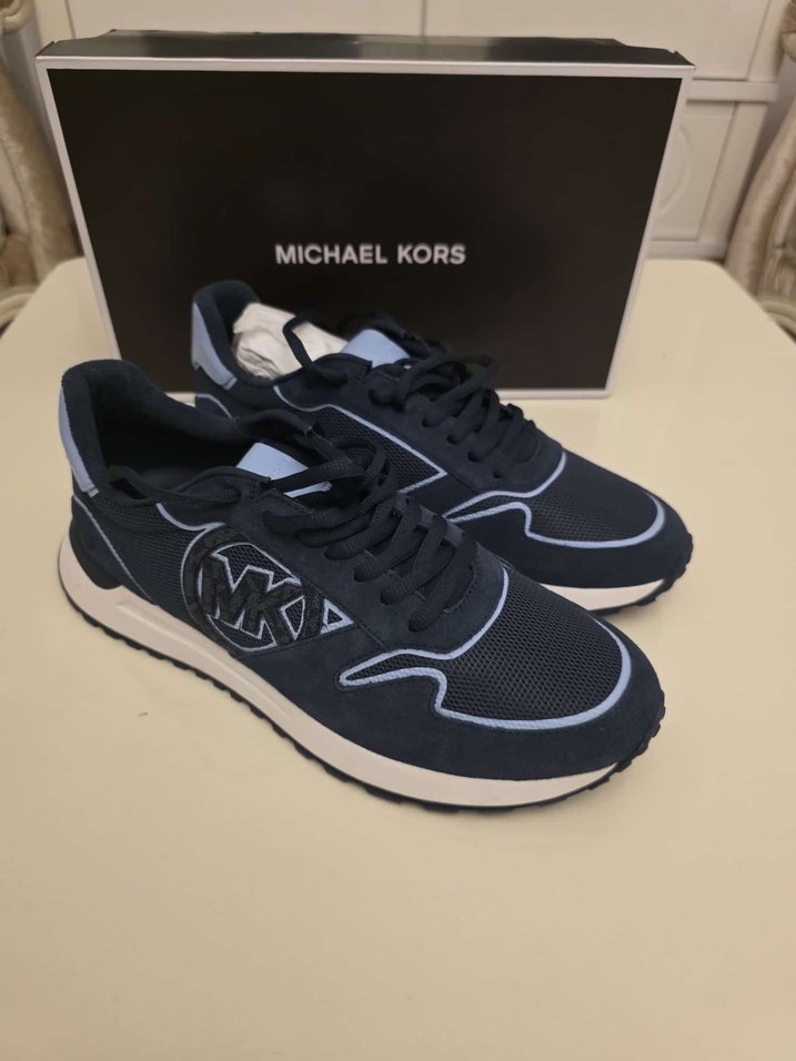 Michael Kors lacivert baskılı, bağcıklı ve stiletto spor ayakkabı, kauçuk tabanlı, spor ve sokak stili için uygundur.