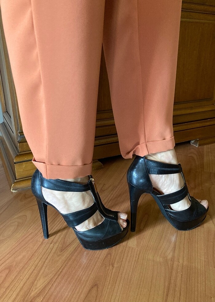 Platformlu rahat ayakkabıdır topuk uzunluğu 12 cm dir bir iki kere kullandım