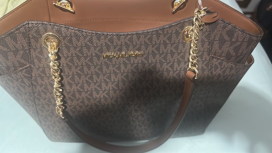 Michael Kors kadın çanta, parlak kahverengi deri ve baskılı detaylarla zincir süslemeye sahip. Klasik ve modern tarzı birleştirir. Günlük kullanım için uygun.