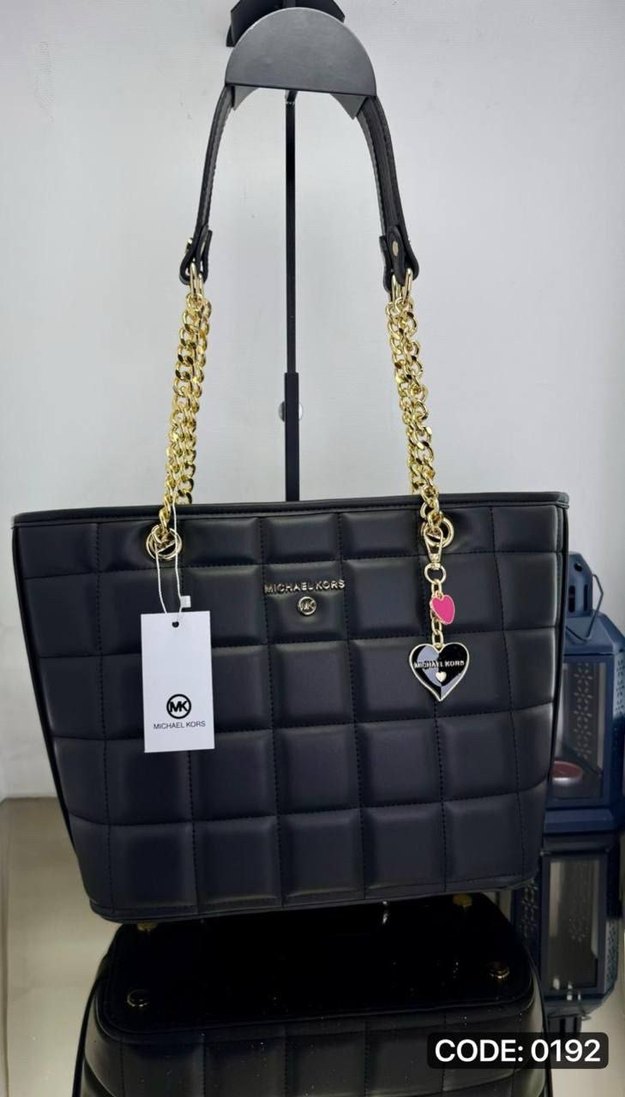 Michael Kors marka, zincir detaylı, siyah kapitone desenli deri çanta. Günlük kullanım için uygun, trend sokak stiliyle uyumlu. A++++ A kalite Bby72