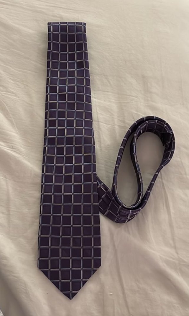 Bu erkek kravatı, iş ortamları için uygun olan koyu mor renkte ve kare desenlidir, sade bir görünüme sahiptir. Ipektir.