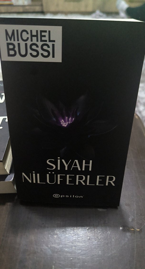 Michel Bussi'nin Opsilon'dan çıkan Siyah Nilüferler adlı romanı, siyah nilüfer desenli koyu renkli kapağa sahip.