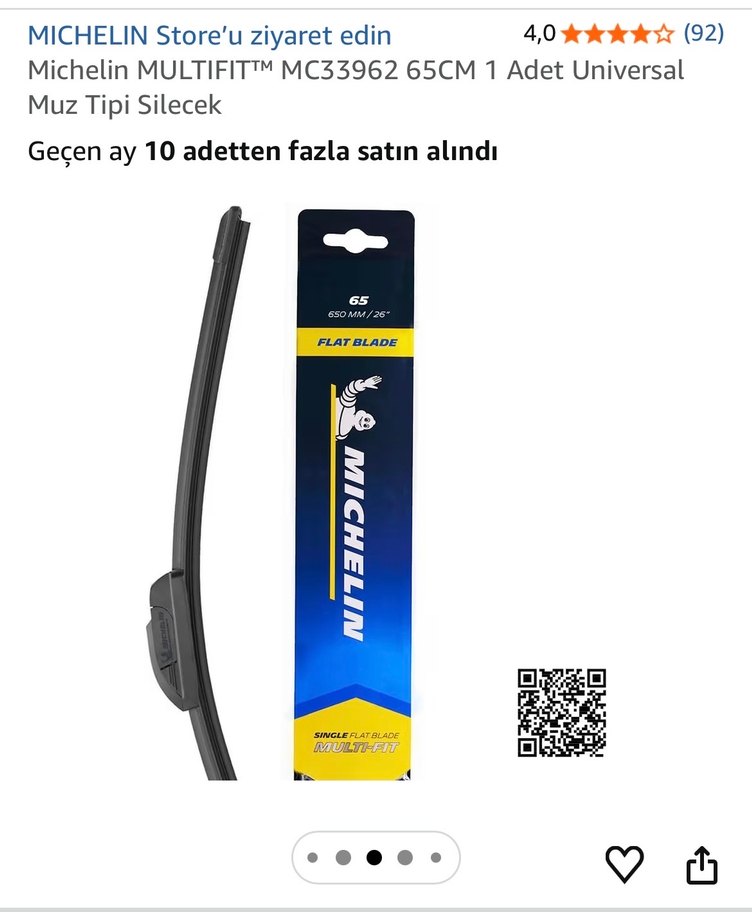 Michelin 65 cm uzun tip universal silecek, düz bıçak yapısıyla etkili temizlik sağlar. Koyu renkli, dayanıklı silecek. Aracımı sattığım için ihtiyaç kalmadı. Kutusu bile açılmamıştır.iade yok.