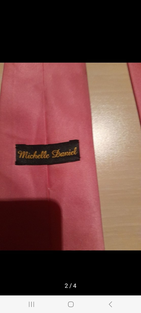 Parlak pembe renkte, bohem tarzında erkek kravatı. Üzerinde Michelle Daniel etiketi bulunur, eski Paris havası taşır. Orijinal olan ürün yeni gibidir.