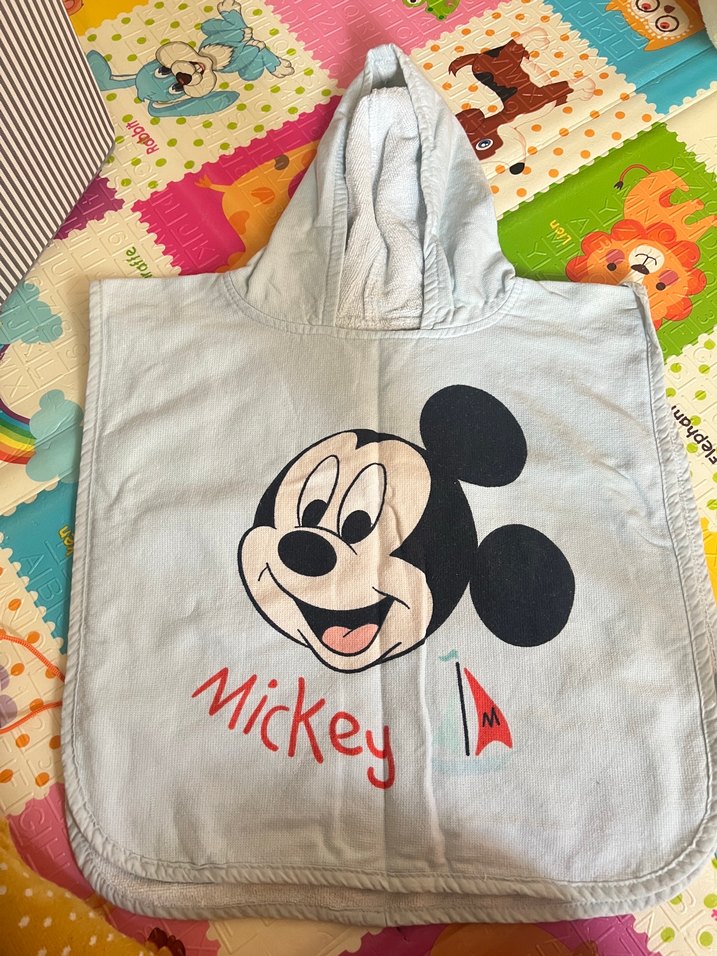 Turkuaz, kapüşonlu ve Mickey Mouse baskılı yumuşak dokulu erkek çocuk bornoz