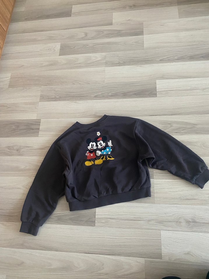 Gri renk, uzun kollu, yuvarlak yakalı, Mickey ve arkadaşları baskılı, düğmeli detaylı, rahat kesim ve normal boyda sweatshirt. Yumuşak ve sıcak kumaştan üretilmiştir. Görselde görüldüğü gibi hafif renk solması olabilir. 7/8 yaş yazıyor fakat biz 6/7 yaş arası kullandık
