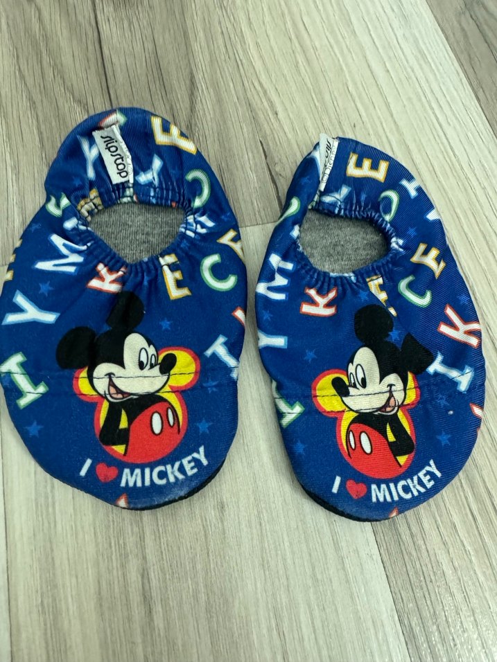 Renkli Mickey baskılı çocuk panduf, yumuşak ve sıcak dokulu kumaştan, kolay giyimi sağlayan 19-20 numara