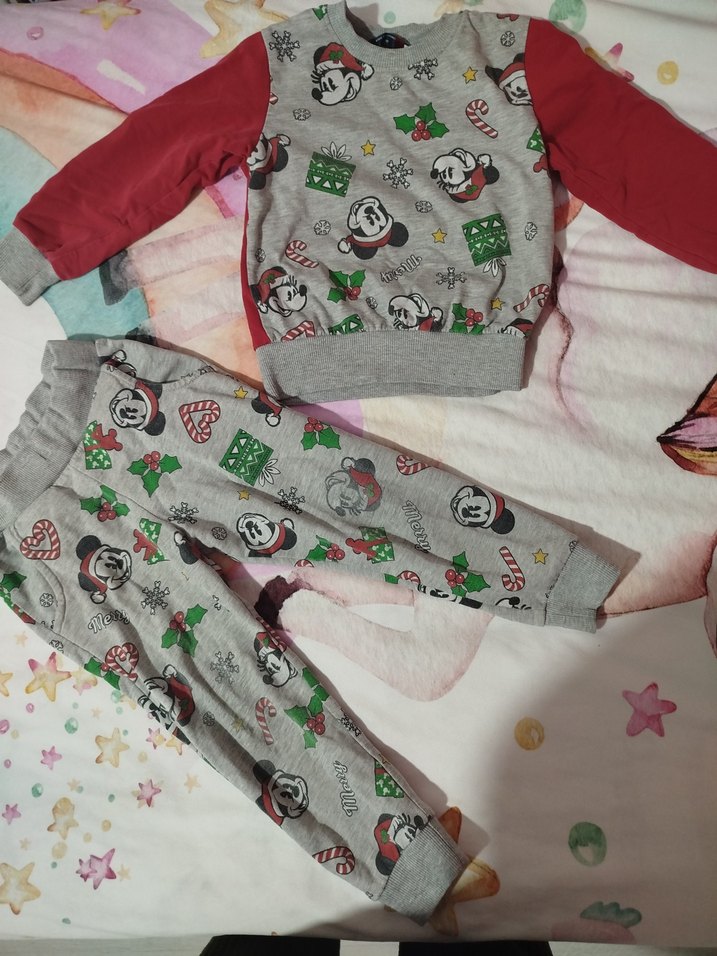 Kışlık çocuk unisex pijama takımı. Alt pijamada yıkamadan kaynaklı renginde solmalar var. Başka bir defosu yoktur. Ölçüler fotoğraflarda mevcuttur.3-4 yaş.