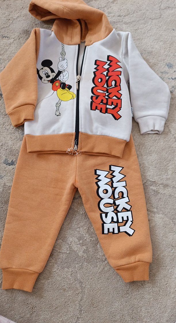 Renkli Mickey Mouse baskılı, fermuarlı uzun kollu ve bisiklet yaka bebek erkek eşofman takımı, yumuşak ve sıcak kumaştan.